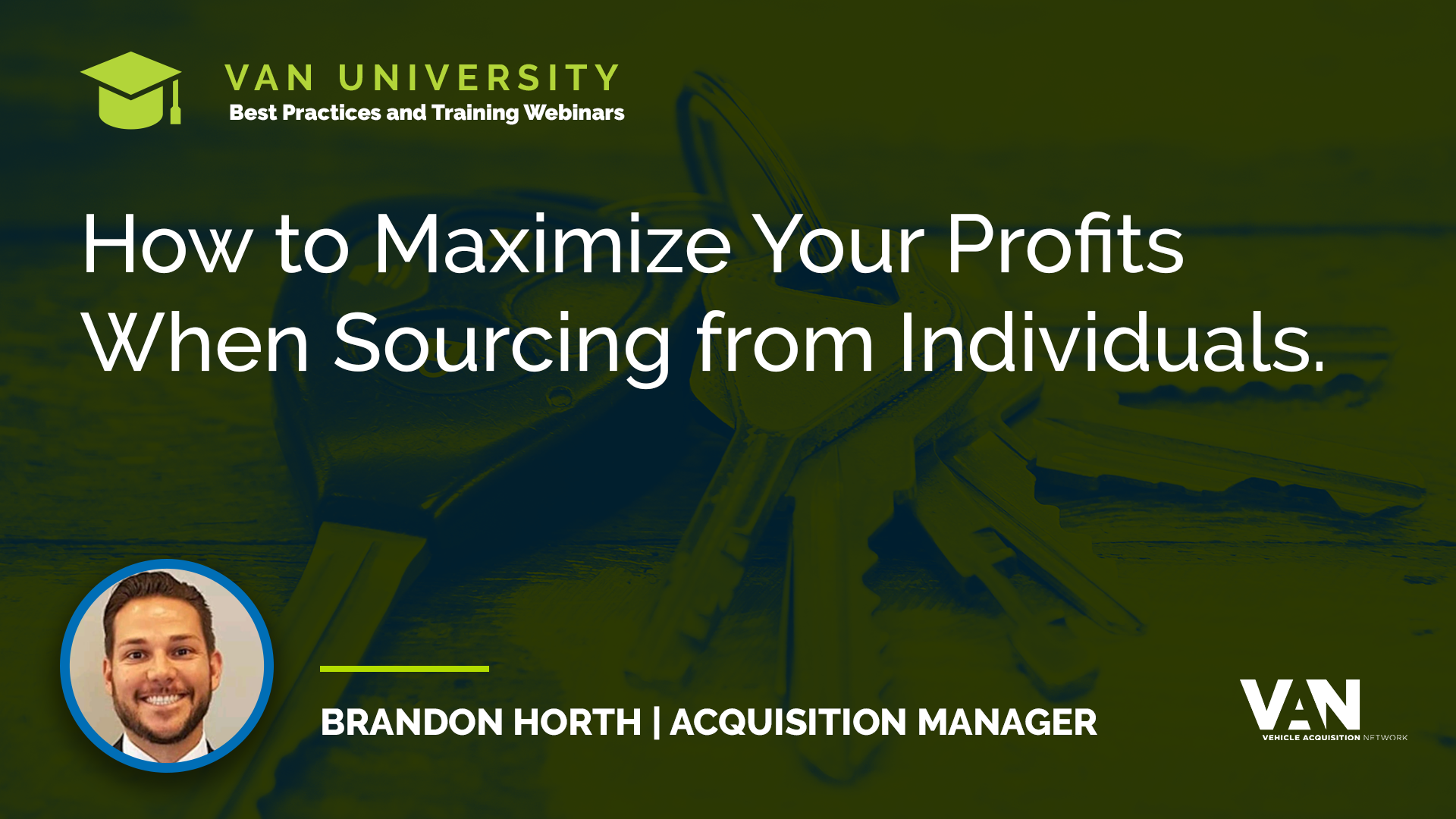 > Sign up today in the VAN Learning Center for more great information about sourcing vehicles from individuals and to be included in future webinars.