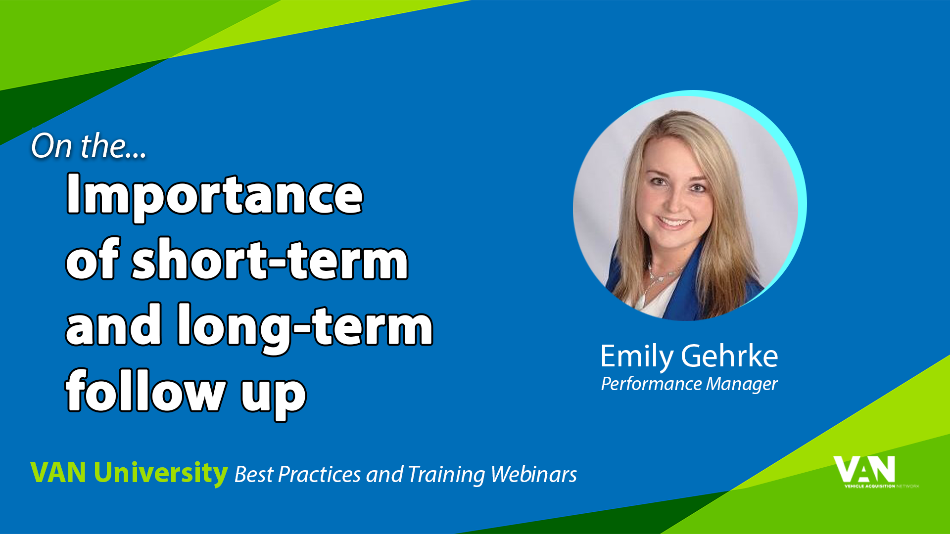 Emily Gehrke, VAN Performance Manager, points out how VAN helps precipitate and engage these prospective customers by distributing three timed, automated texts. But it is up the the dealerships to follow up personally at 15, 30, 45, 60 and possibly 90-day intervals, as circumstances often change.