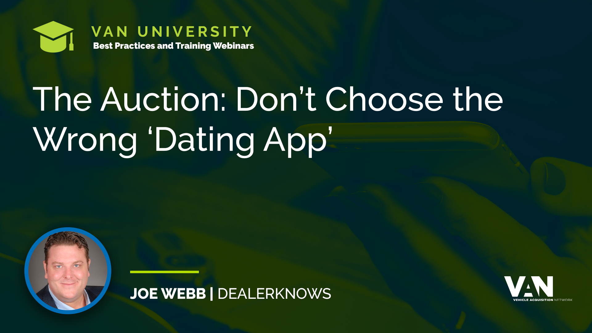Webb continues, “VAN is like meeting a significant somebody through a friend. If VAN is your friend, you’ve already set the filters. VAN connects dealers with the right inventory, much the same way a friend connects you with (your soulmate) to weed out all the crowd and the muck. (The dating site) ‘Tinder’ would be the trade-in. Auctions would be meeting someone at work.”
